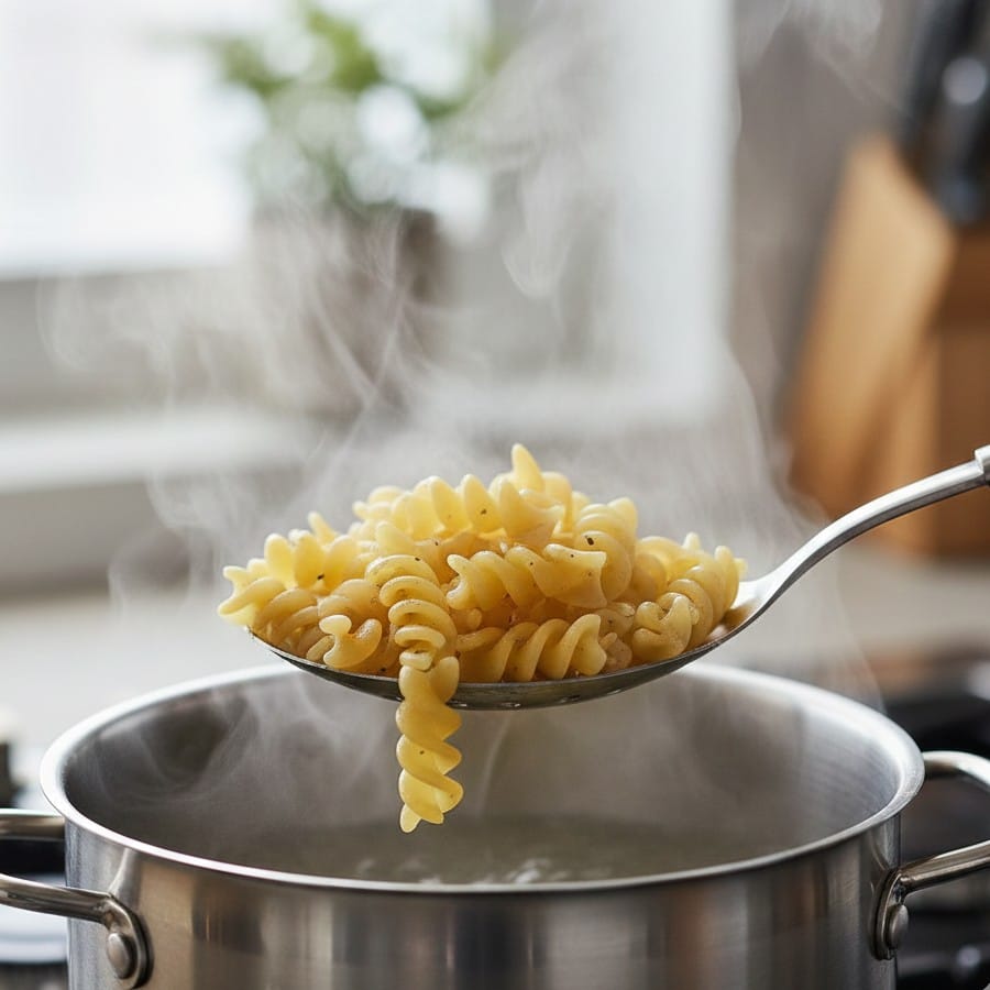 Сіль слід додавати у воду лише тоді, коли вона повністю закипіла. Це допомагає стабілізувати структуру безглютенової пасти та покращує смак.